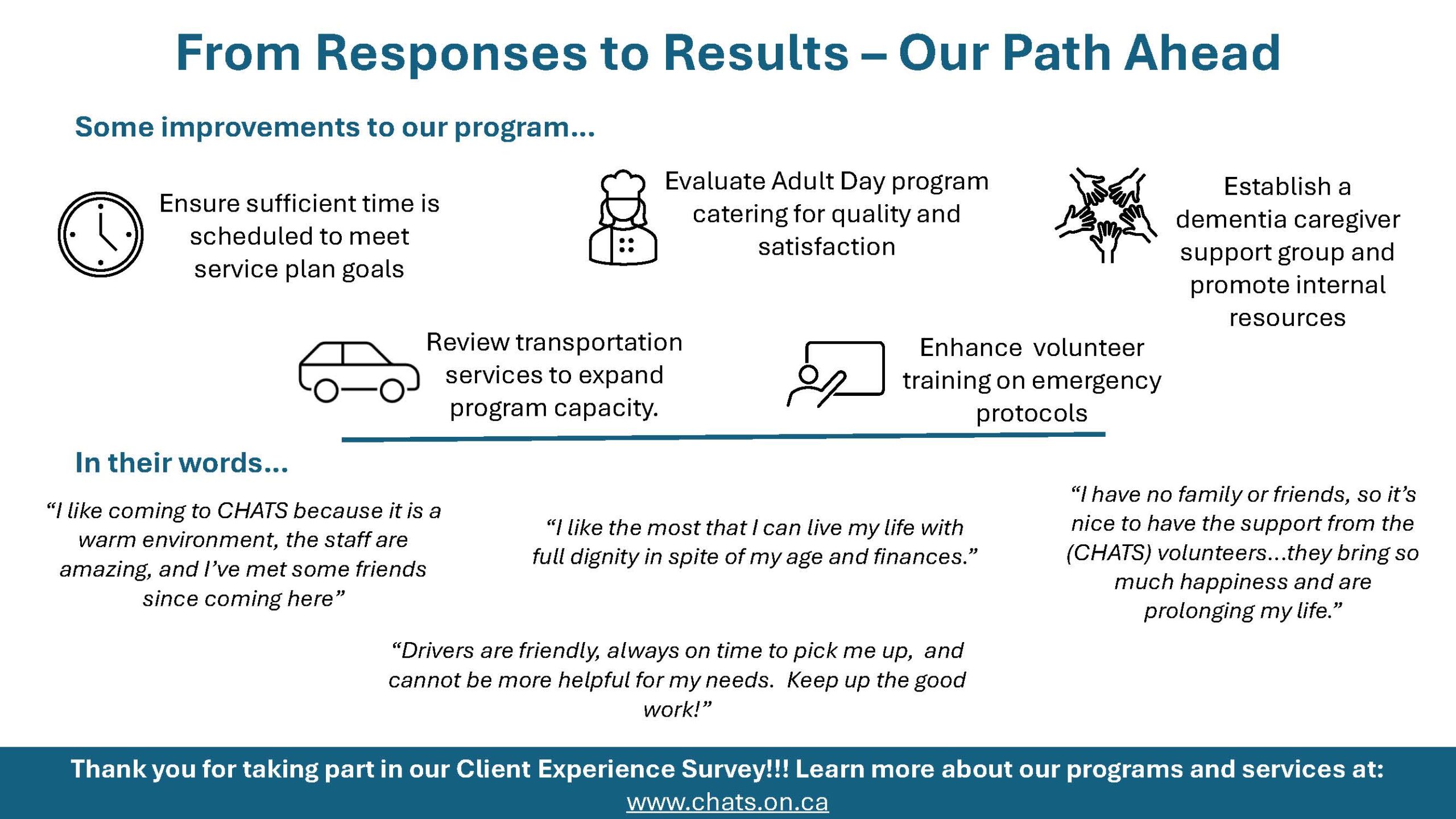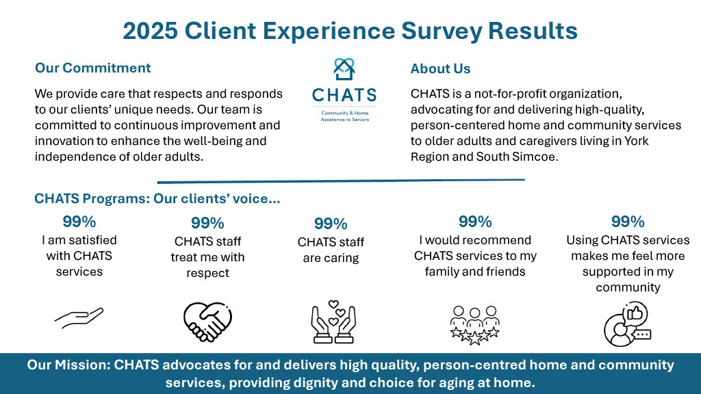 We extend our sincere thanks to the 962 CHATS clients who took the time to participate in our Client Experience Survey in July/August, 2025. Your thoughtful input and honest feedback are truly appreciated.
