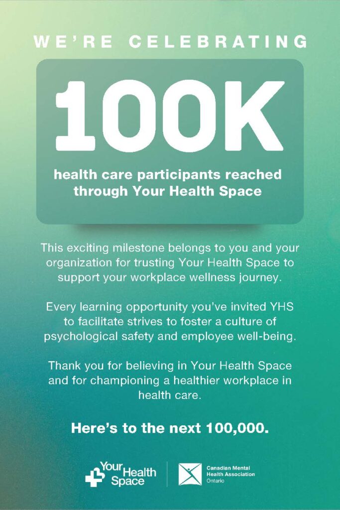 Your Health Space—a program of CMHA Ontario—has reached an exciting milestone: we have now trained 100,000 participants!